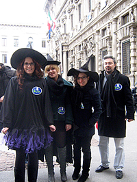 Tre Befane a Palazzo Marino. Per premiare il sindaco Moratti. Quest’anno la vecchina ha portato la sua calza (bucata), una sorta di Tapiro nero, al sindaco Letizia Moratti e alla compagnia di trasferimento di denaro Western Union.